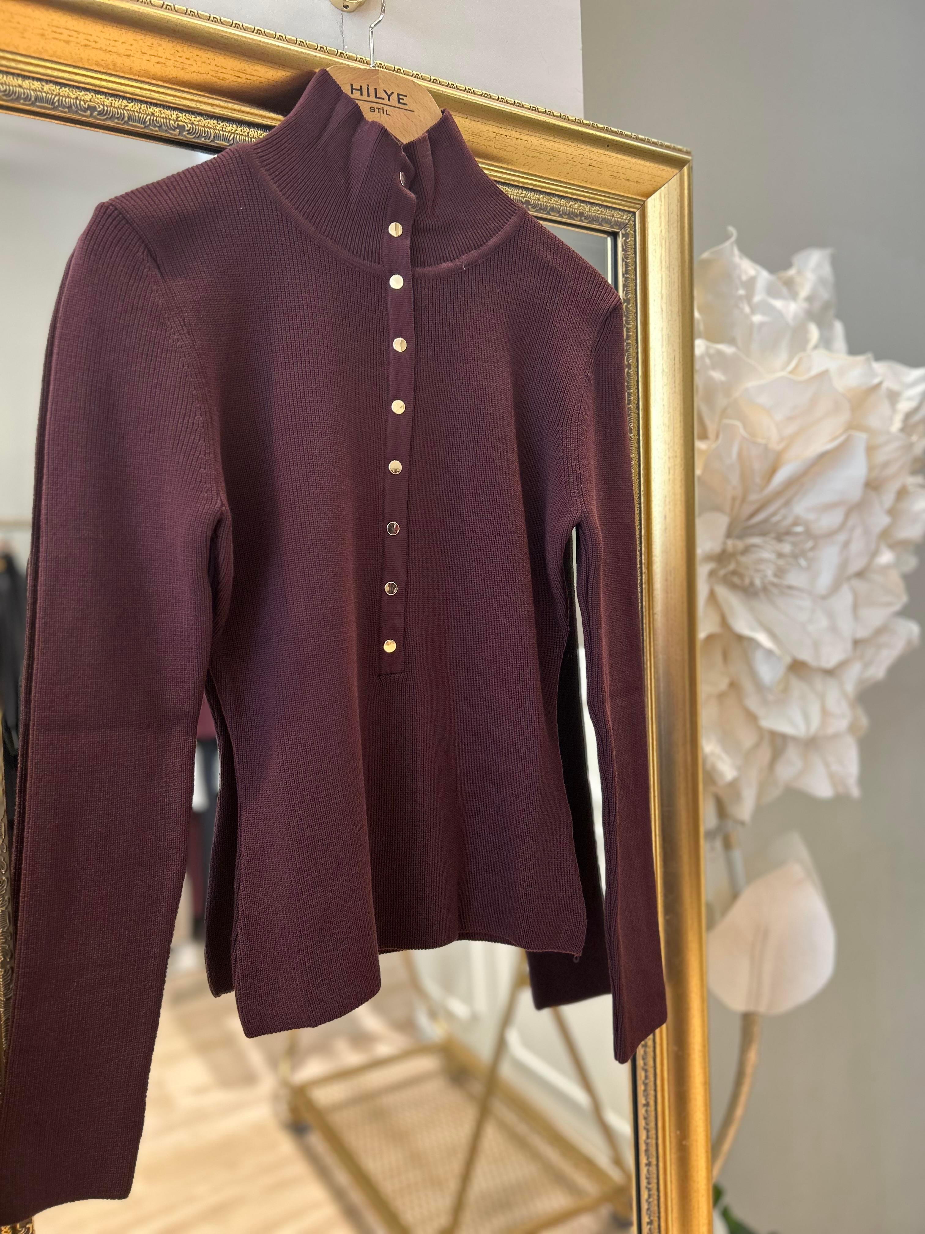 ÖNDEN DÜĞMELİ KAZAK BORDO