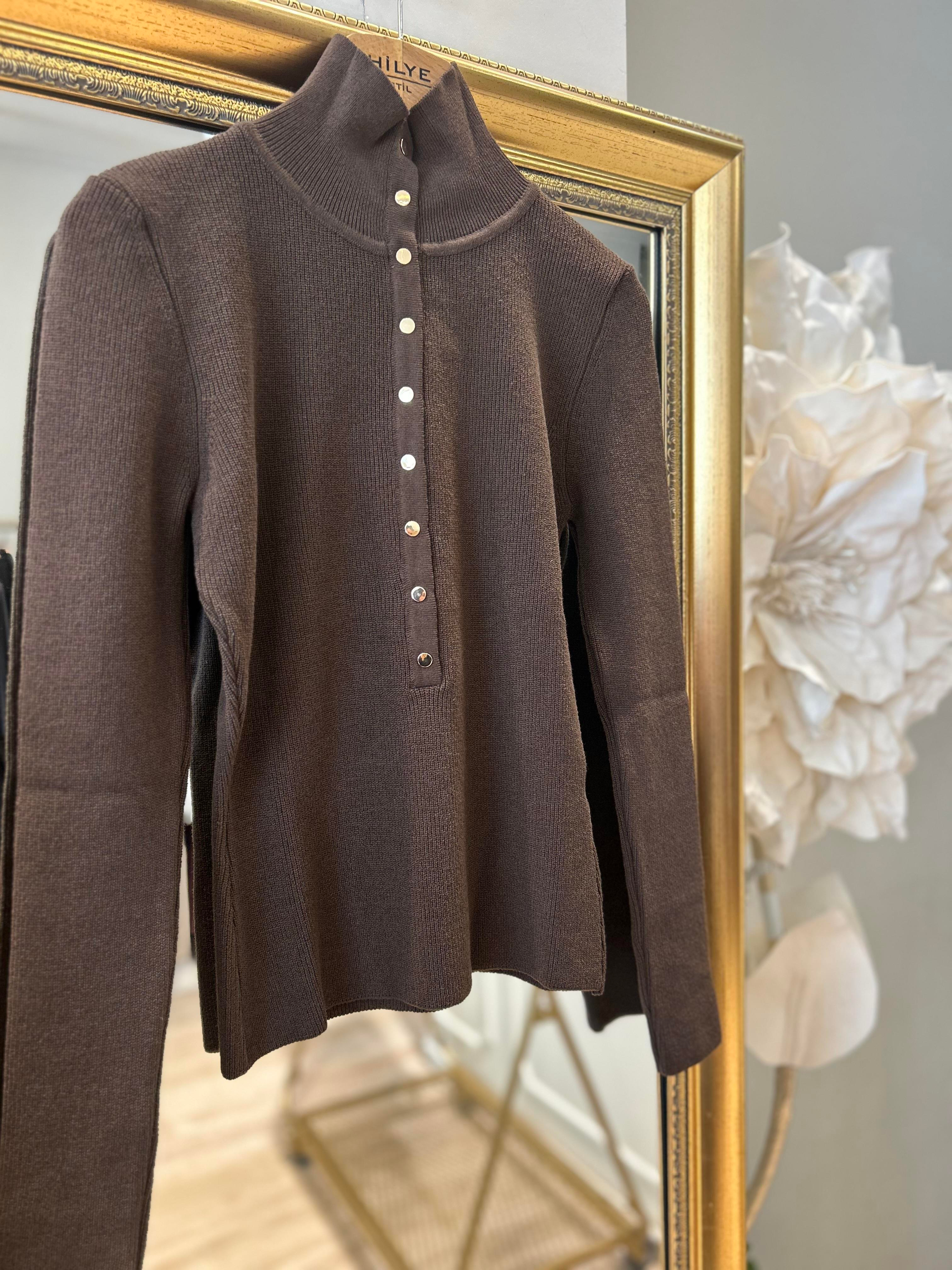 ÖNDEN DÜĞMELİ KAZAK KAHVERENGİ