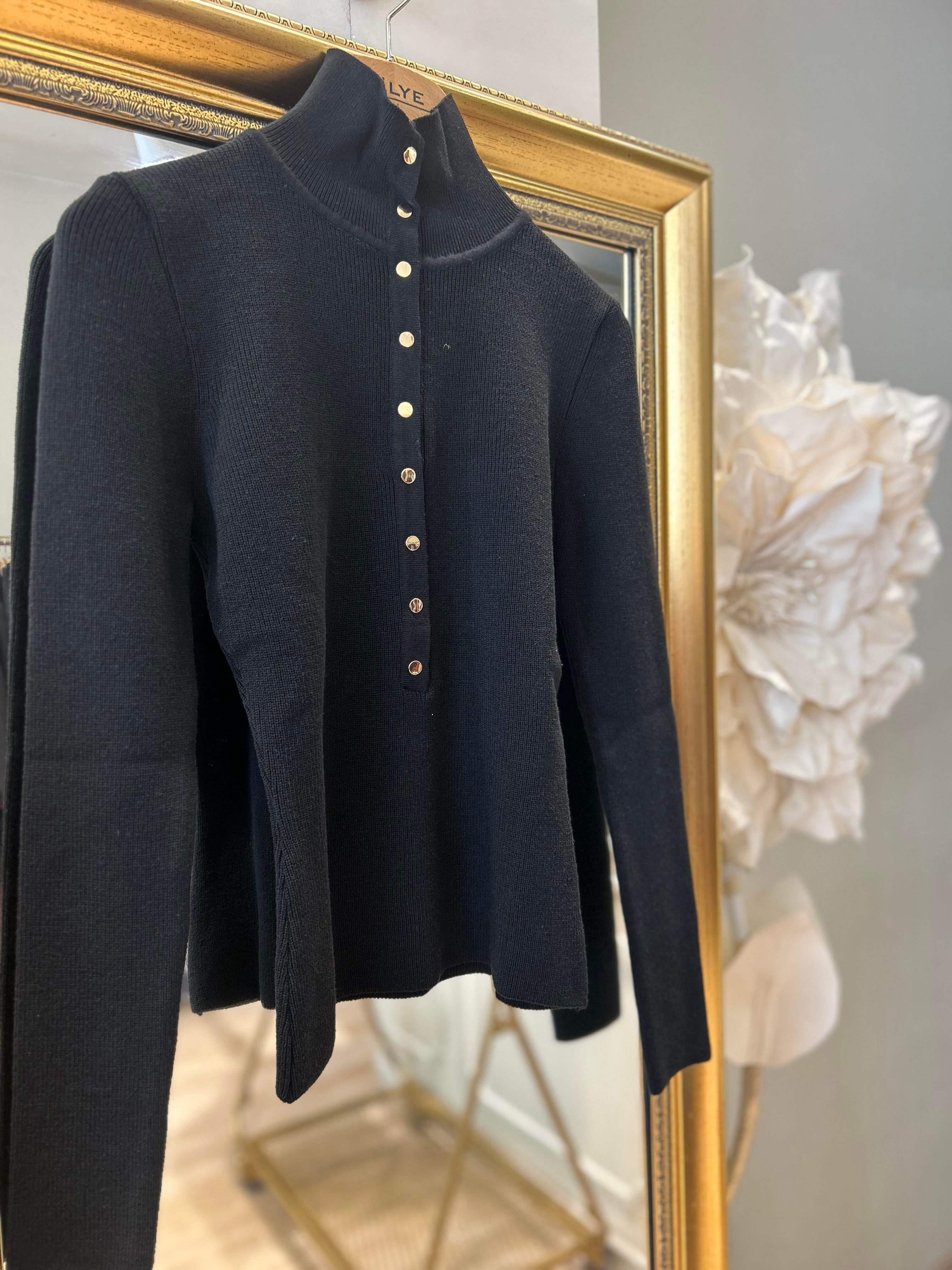 ÖNDEN DÜĞMELİ KAZAK SİYAH
