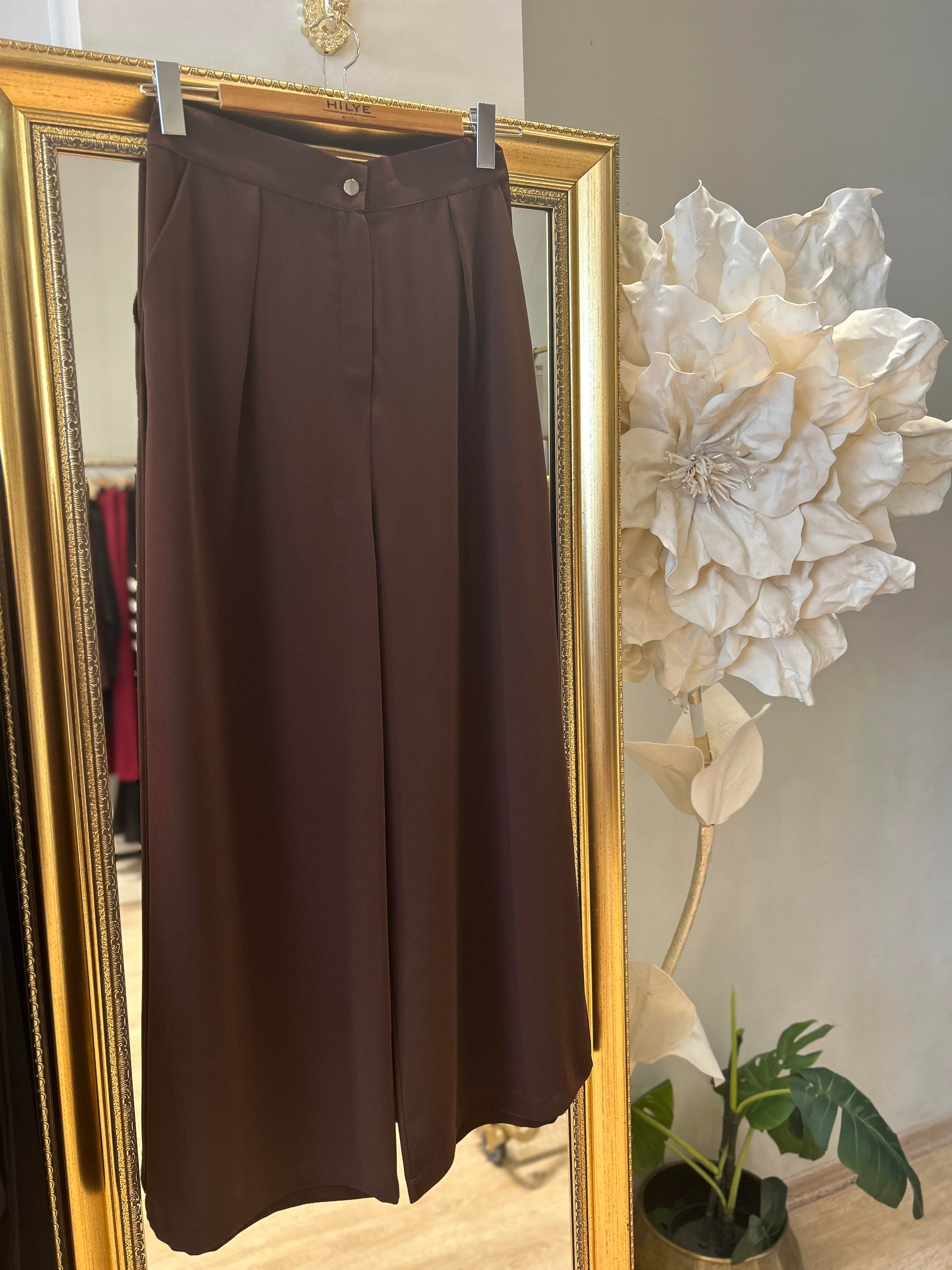 KREP PALAZZO PANTOLON KAHVERENGİ