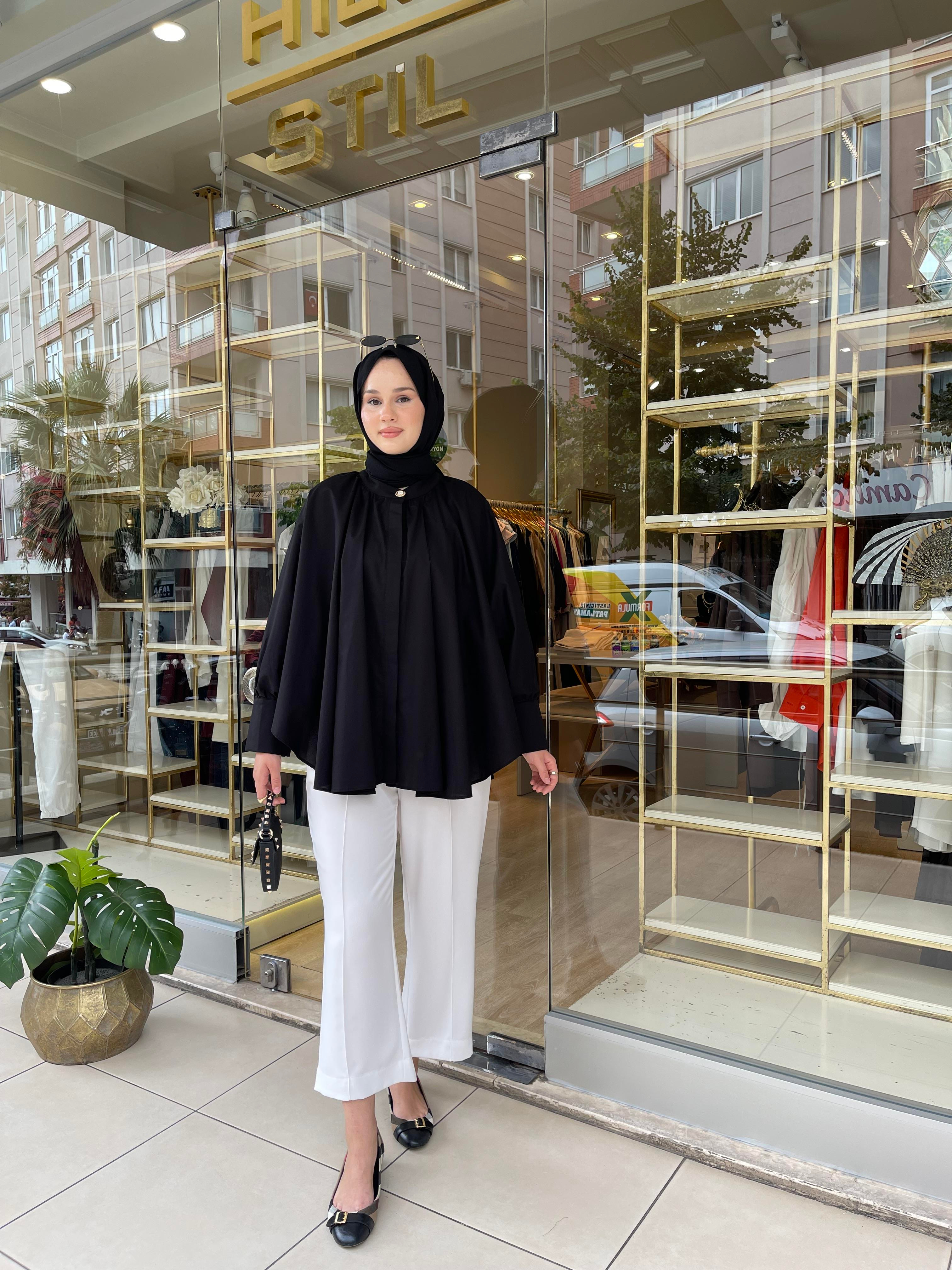 Kumaş Türü: Pamuk karışımlı poplin veya pamuk-saten karışımı ince dokuma kumaş. Rahat, hafif parlak ve tok duruşludur.
