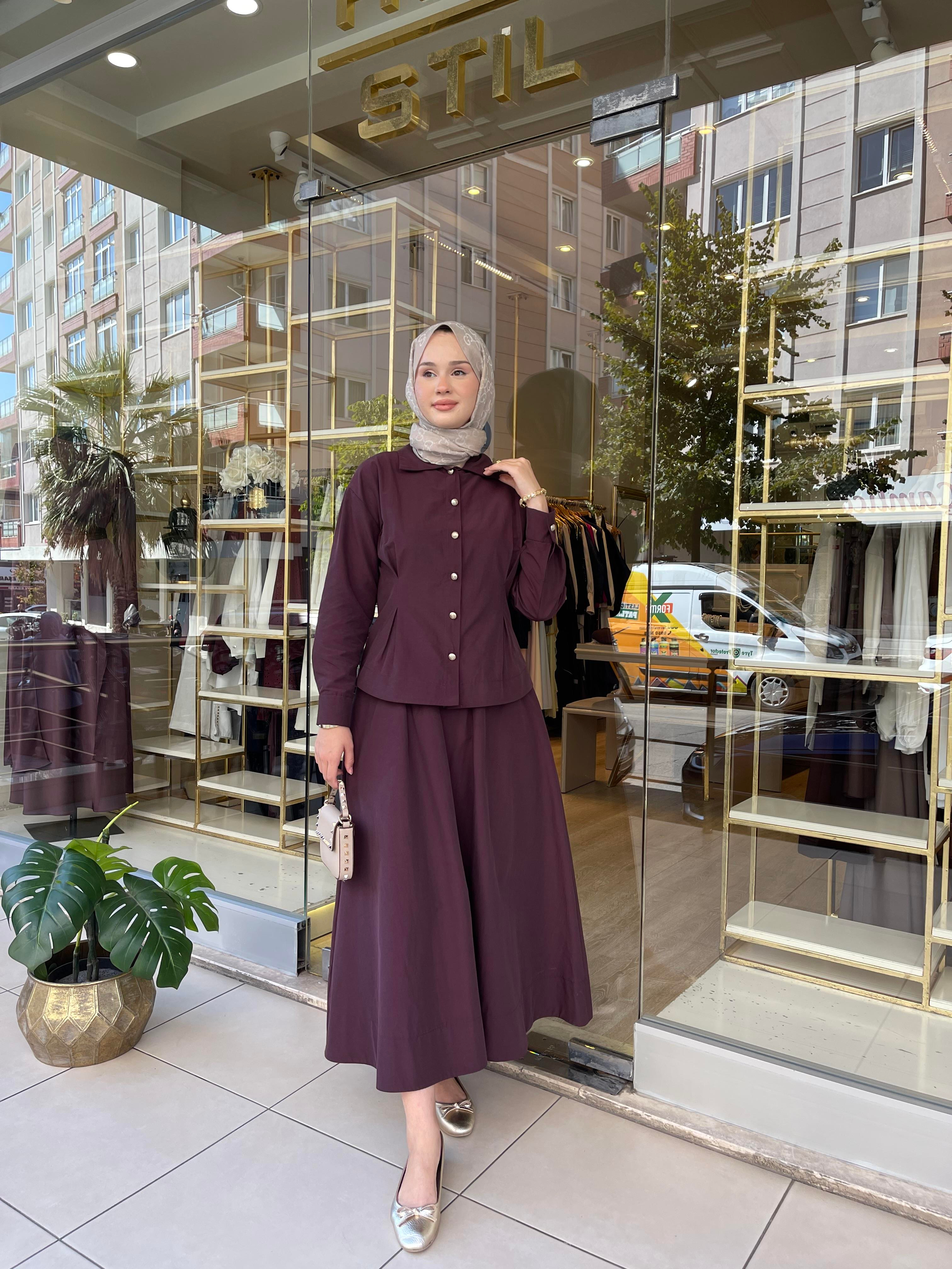 PENS DETAYLI ETEKLİ TAKIM BORDO