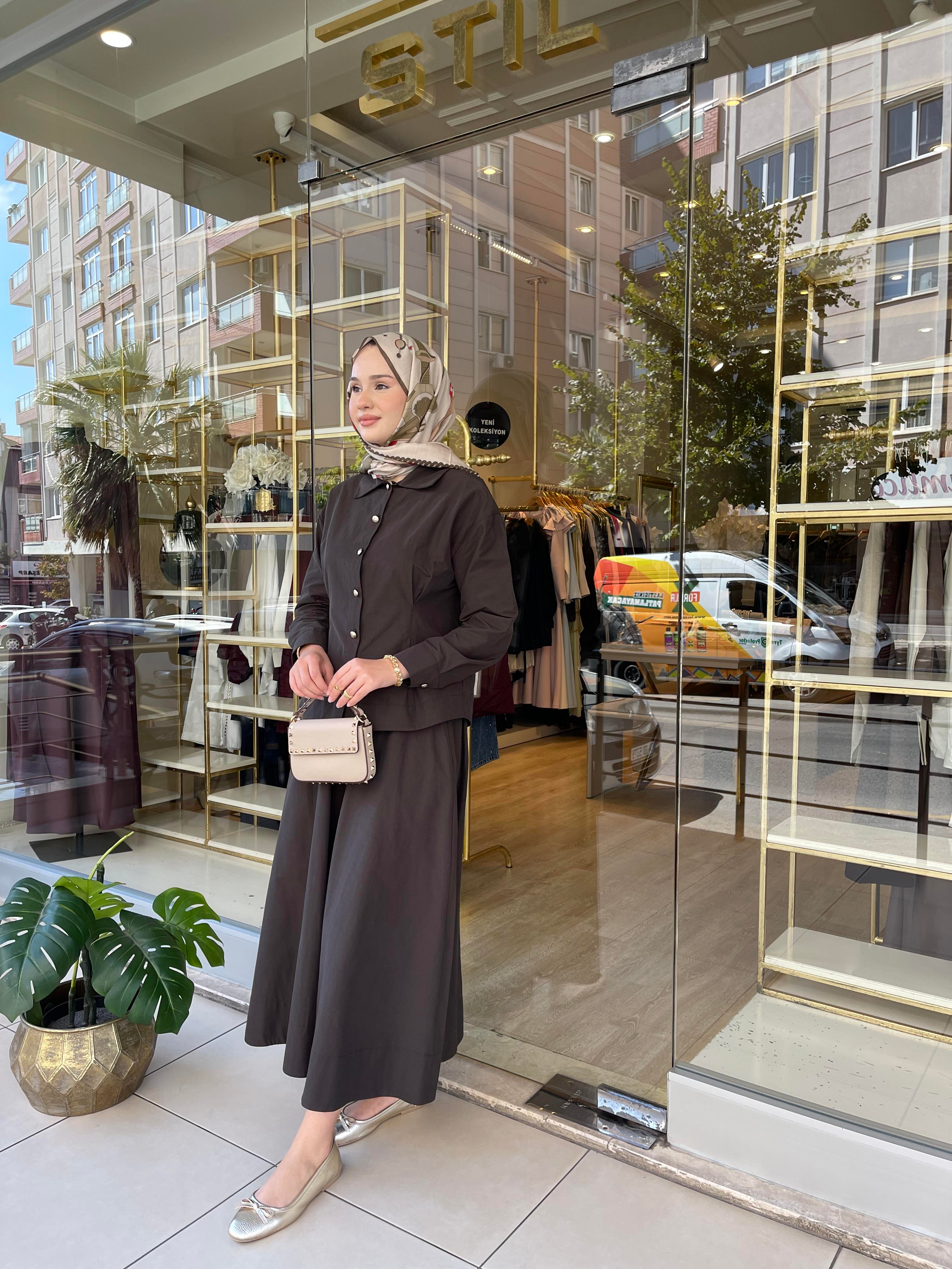 PENS DETAYLI ETEKLİ TAKIM KAHVERENGİ
