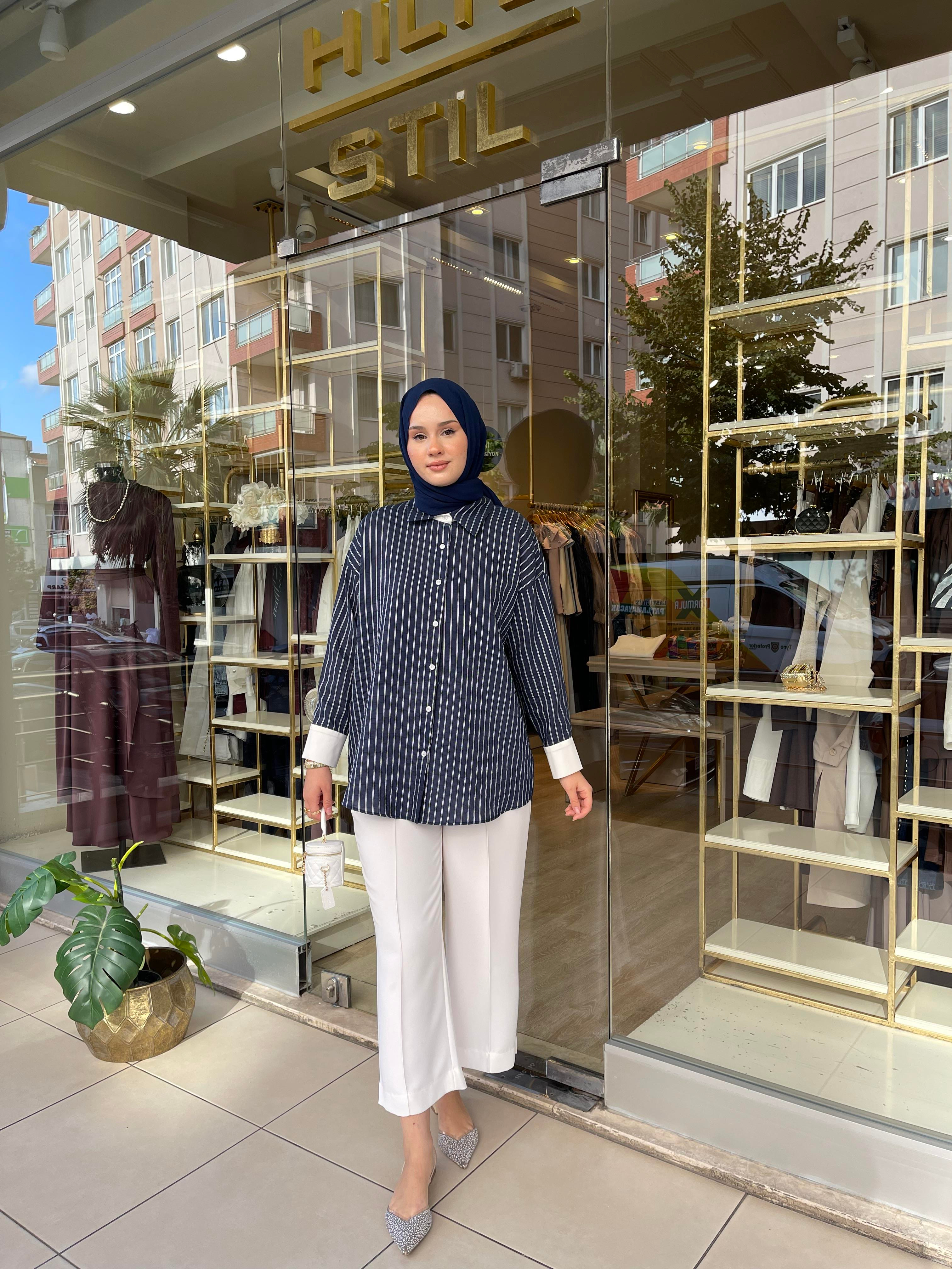 POP ÇİZGİLİ GÖMLEK LACİVERT