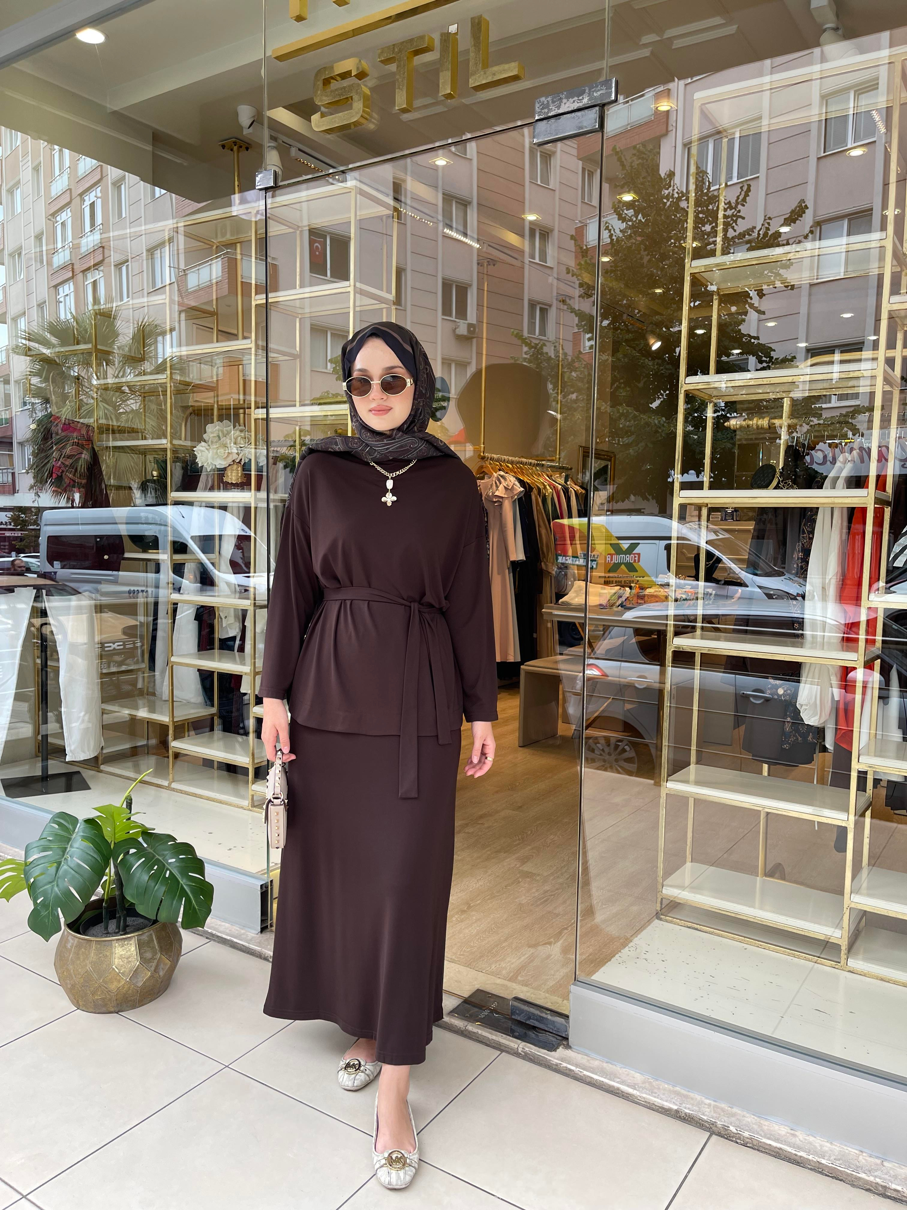 Üst parça seyyar kuşaklıdır (kendi kumaşından kemerli)