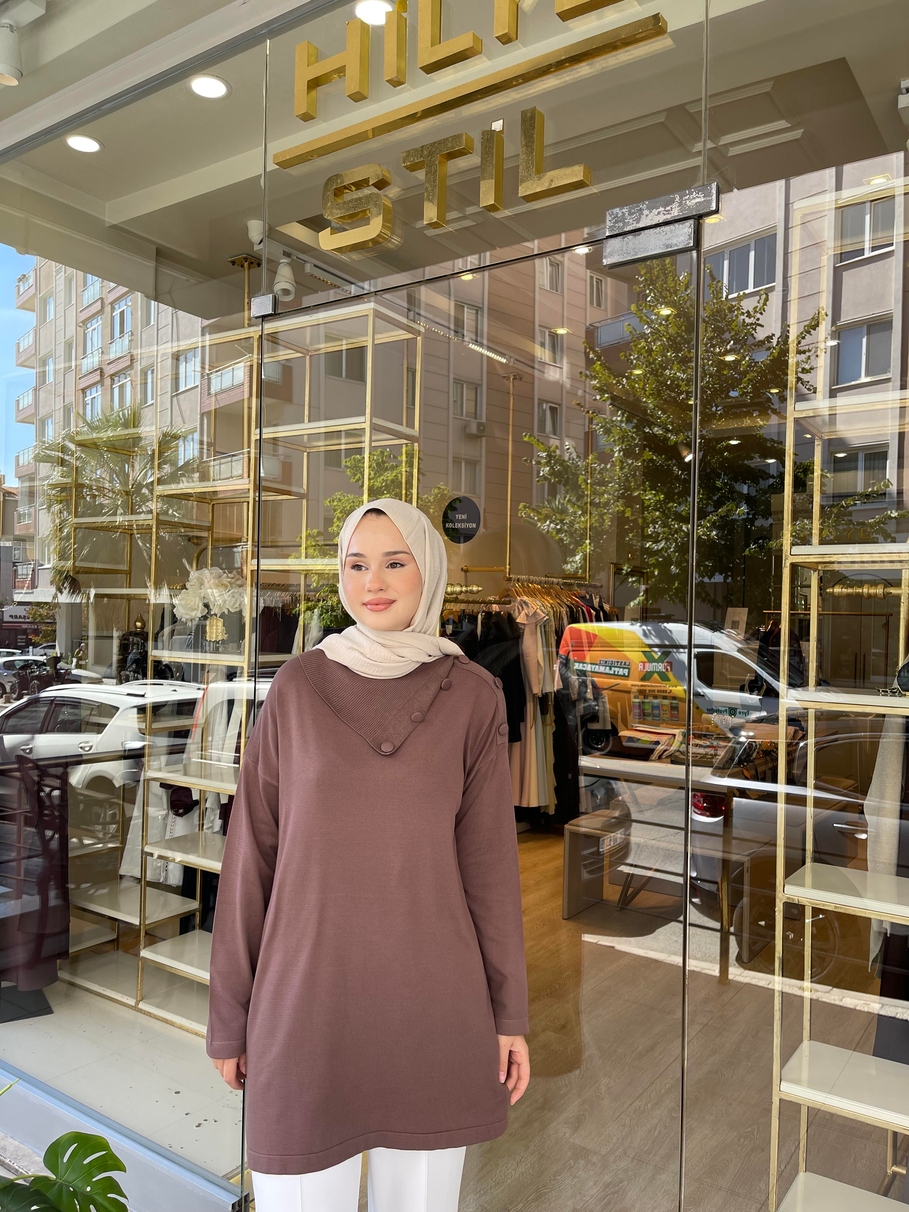 YAKA VEREV TUNİK KAHVERENGİ