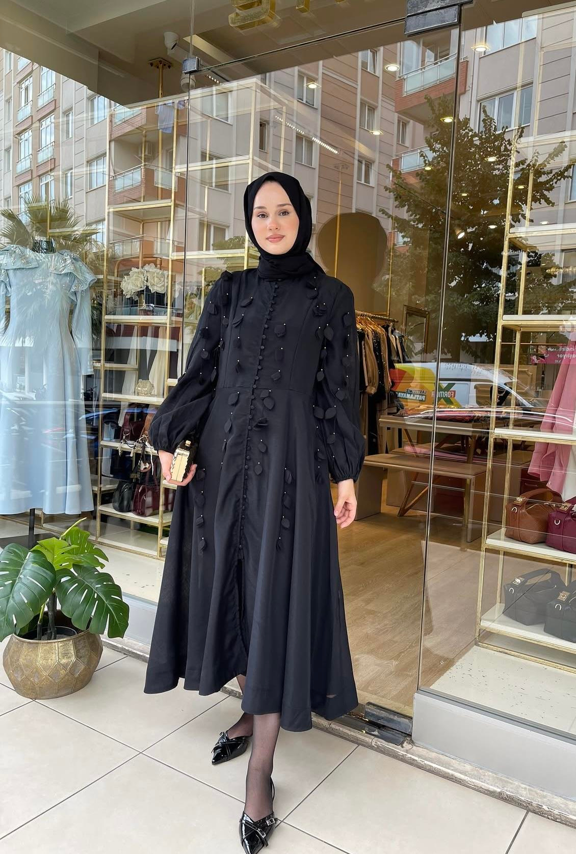 YAPRAK DETAYLI ELBİSE